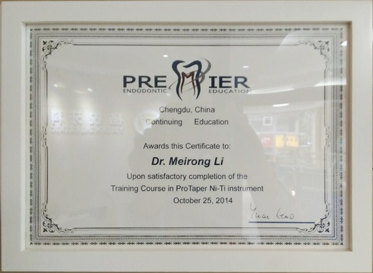 2014年11月份李医生成都参加“根管治疗培训”证书